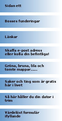 Sidan ett | Bosses funderingar | Länkar | Skaffa e-post adress